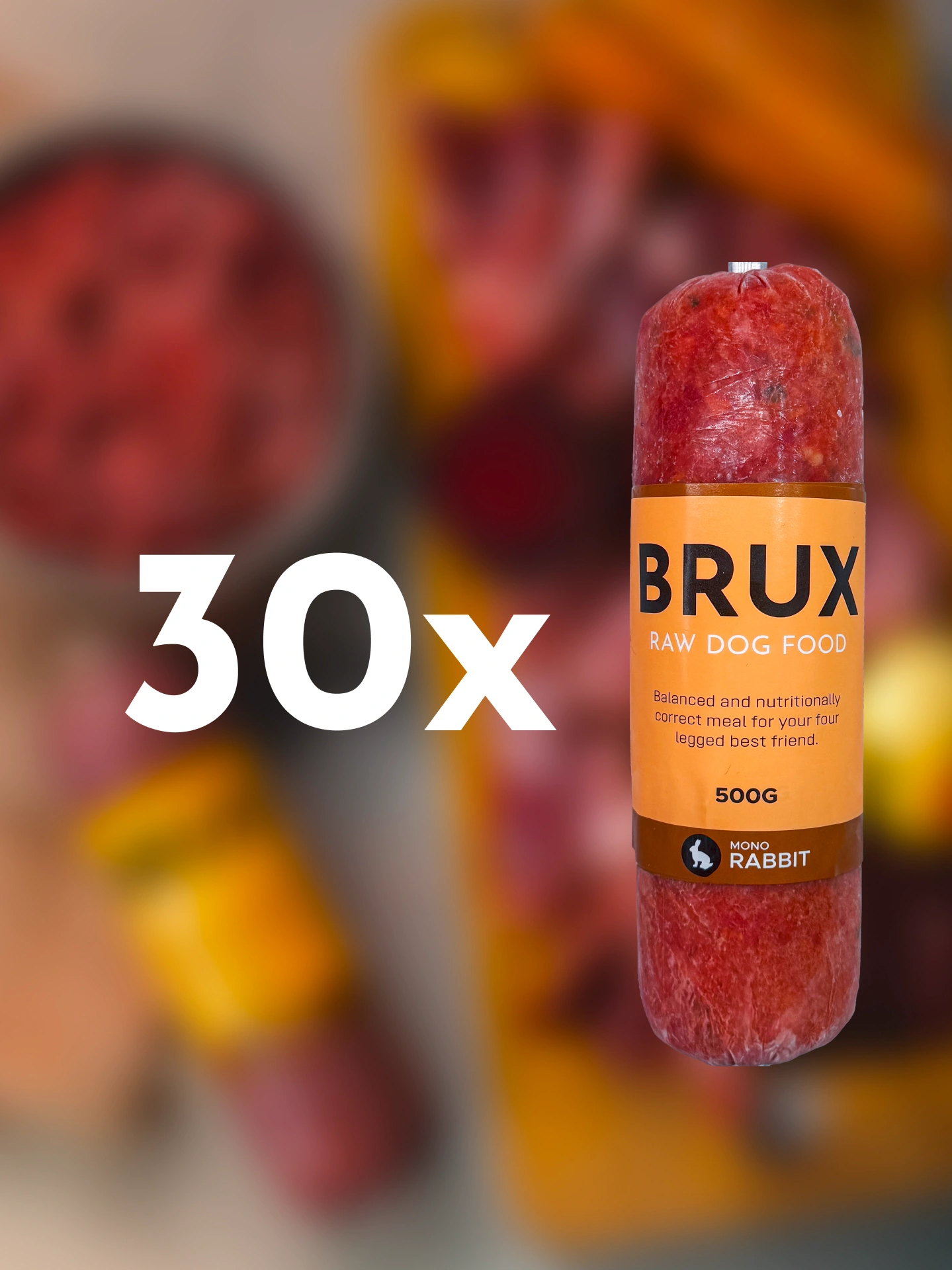 BRUX tasakaalustatud koerte toortoit. Sobilik igas vanuses koerale.